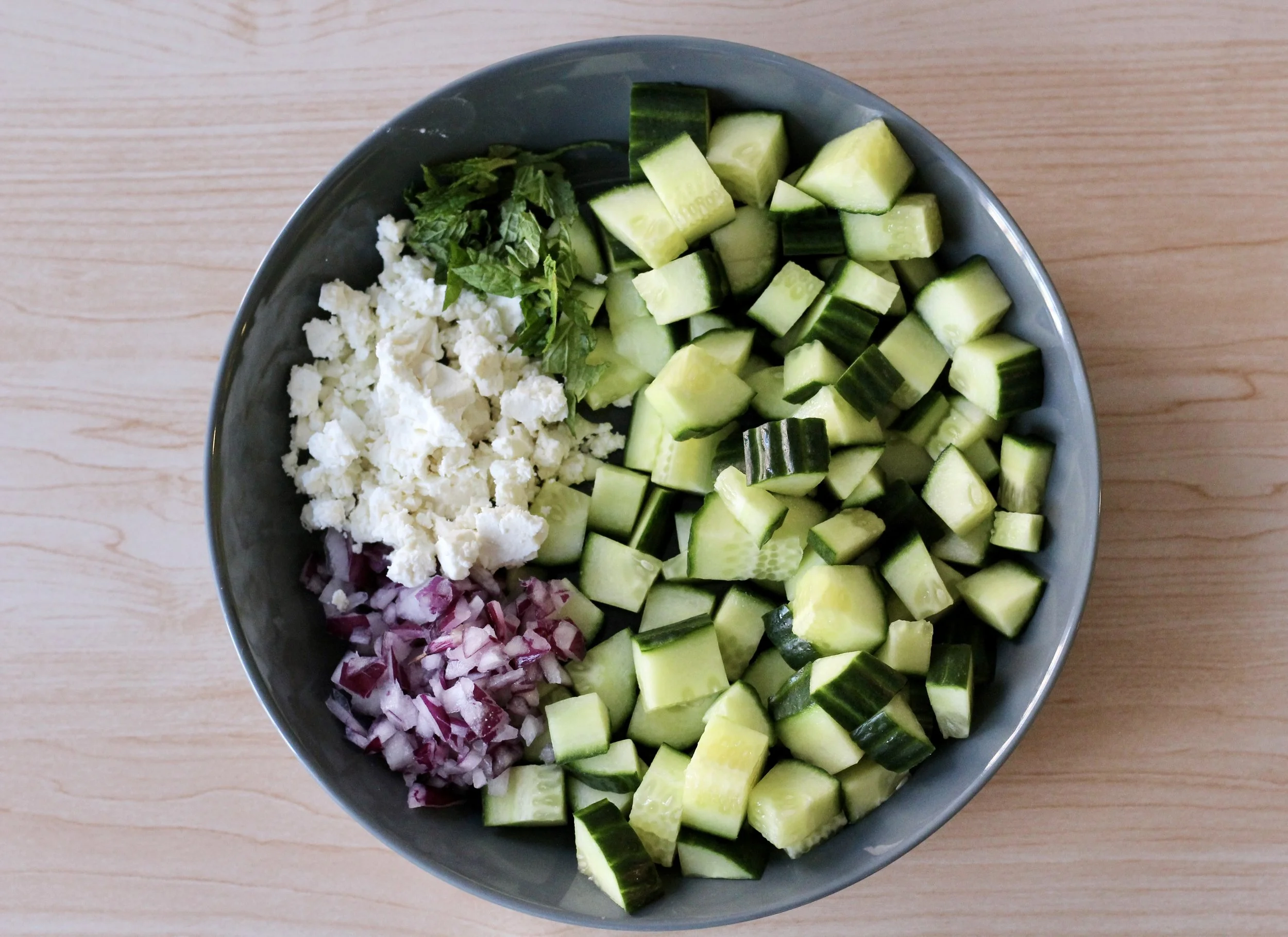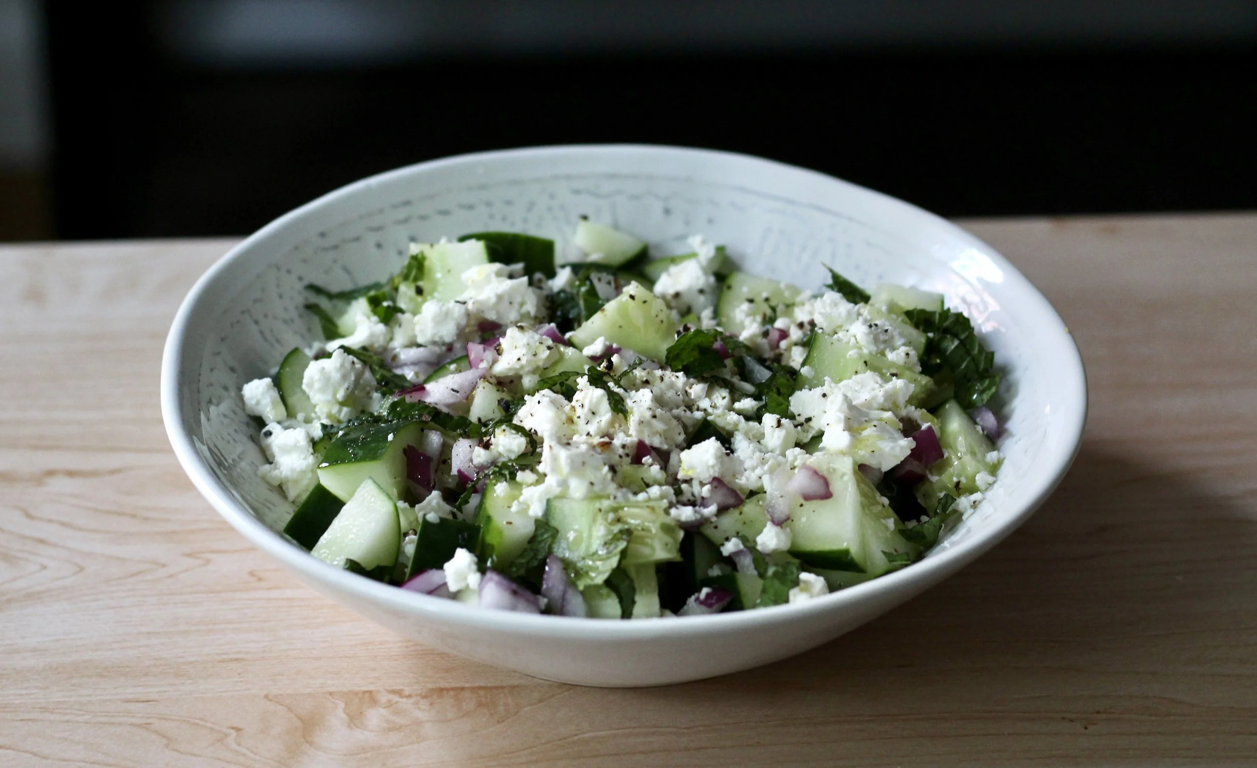 Light, refreshing, and easy—this Cucumber Salad recipe is a quick and tasty way you can add more plants to your plate. Cucumbers are high in water and fiber, which means they are low in calories yet filling. They’re also a great source of nutrients like vitamin K and antioxidants. Toss them with mint, feta, red onion, lemon juice, and olive oil and you get a super easy yet delicious side that will help you meet your health goals.