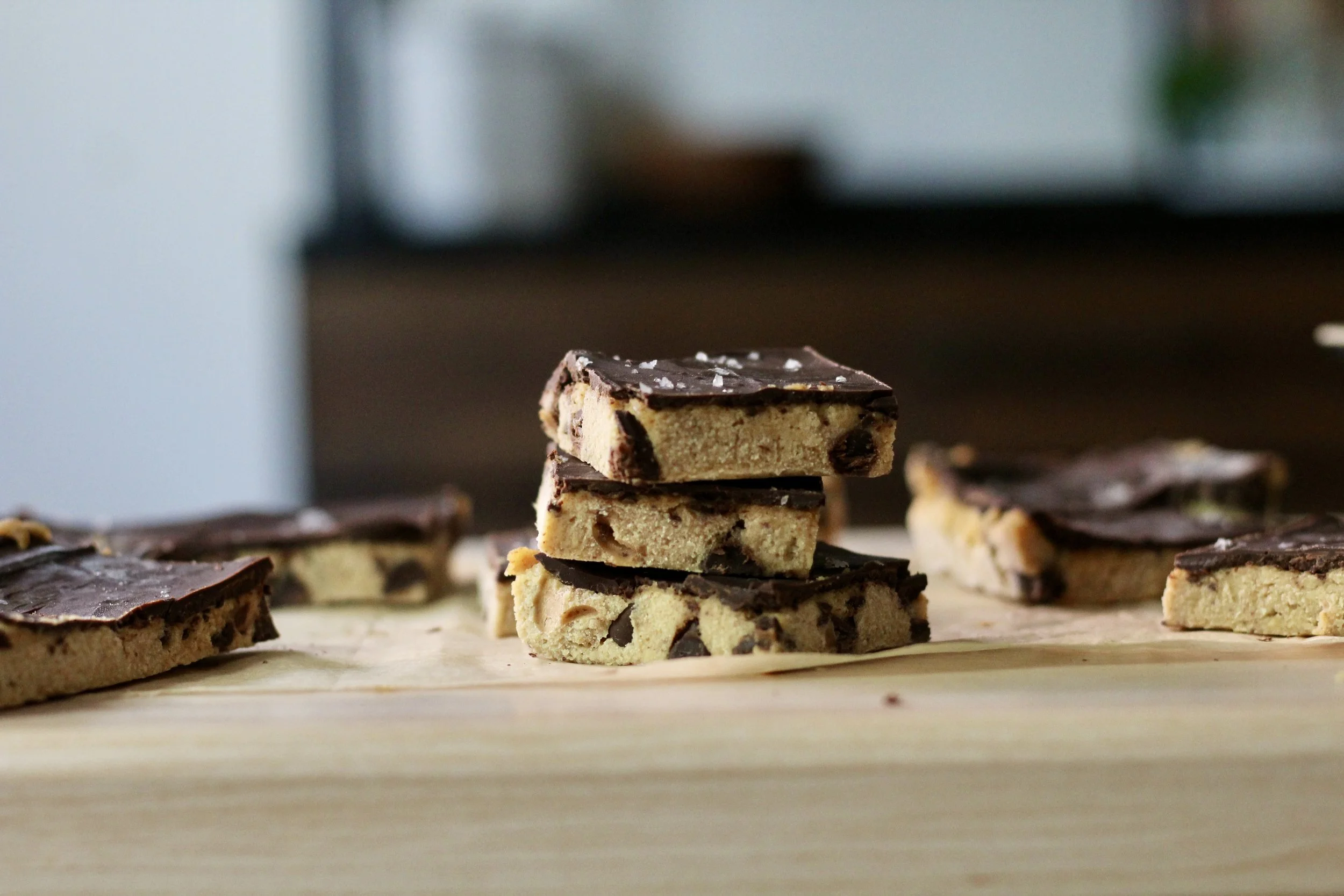 These bars are made with nutritious whole food ingredients, making them lower in carbs and higher in beneficial nutrients like protein, fiber, and healthy fats. The chickpeas help create the doughy base, but trust me there’s no chickpea flavor to be found. These bars also happen to be gluten-free, dairy-free, and egg-free, so they’re perfect for accommodating various dietary restrictions. Whip these up and keep a stash in the freezer for whenever you want a healthier sweet treat.