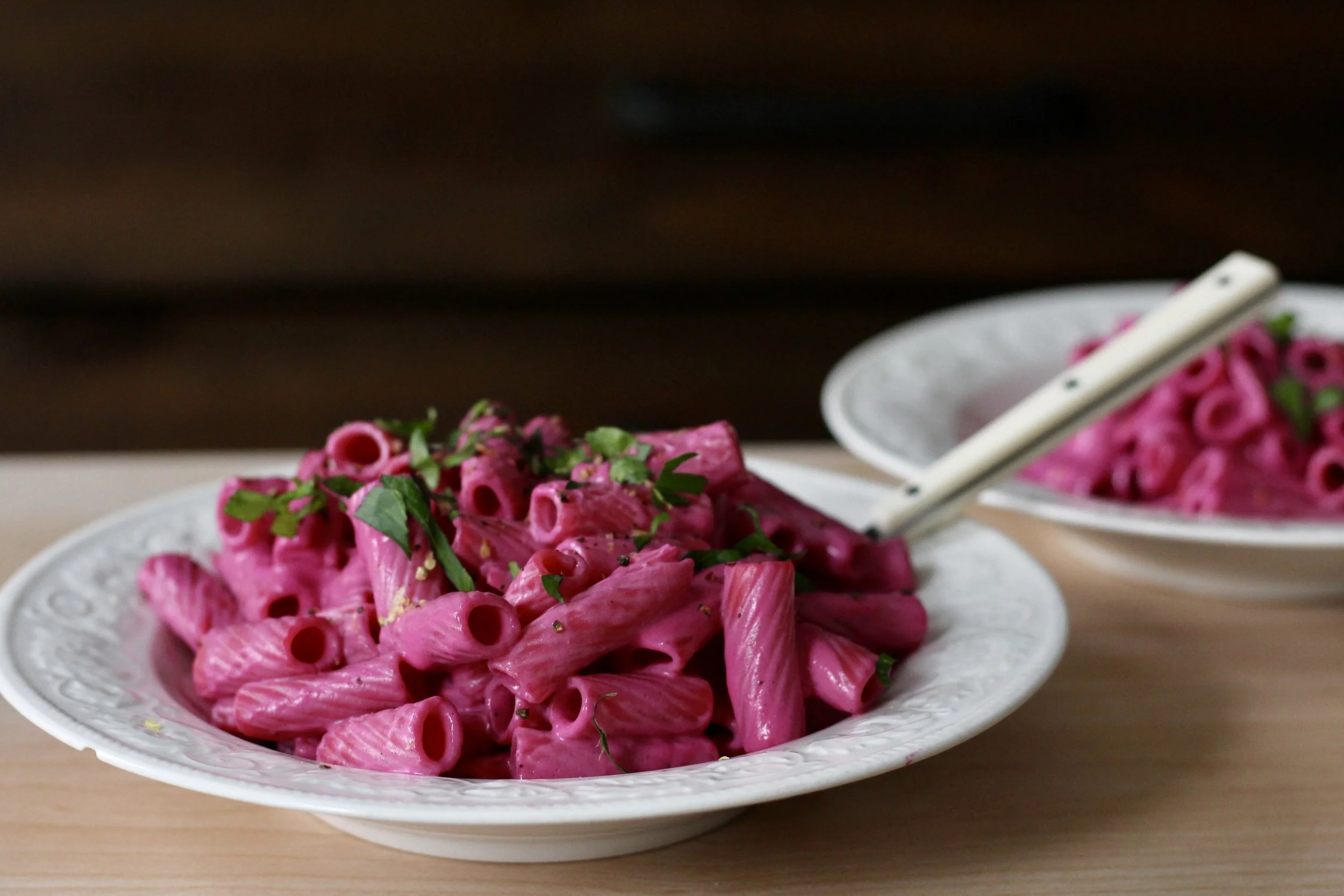 This Pink Protein Pasta is the perfect example of comfort food that still supports your nutrition goals. Naturally colored with roasted beets and blended with creamy goat cheese and silken tofu, this sauce is rich, flavorful, and surprisingly protein-rich. Using a protein-forward pasta helps boost satiety and makes this dish more filling than a traditional pasta meal, while still delivering the cozy, indulgent feel we all crave (about 25 grams of protein with regular pasta and 33 grams of protein with a protein-pasta). Finished with fresh lemon, garlic, and herbs, it’s a vibrant, nourishing option for an easy weeknight dinner—or anytime you want pasta that looks impressive and actually keeps you satisfied.