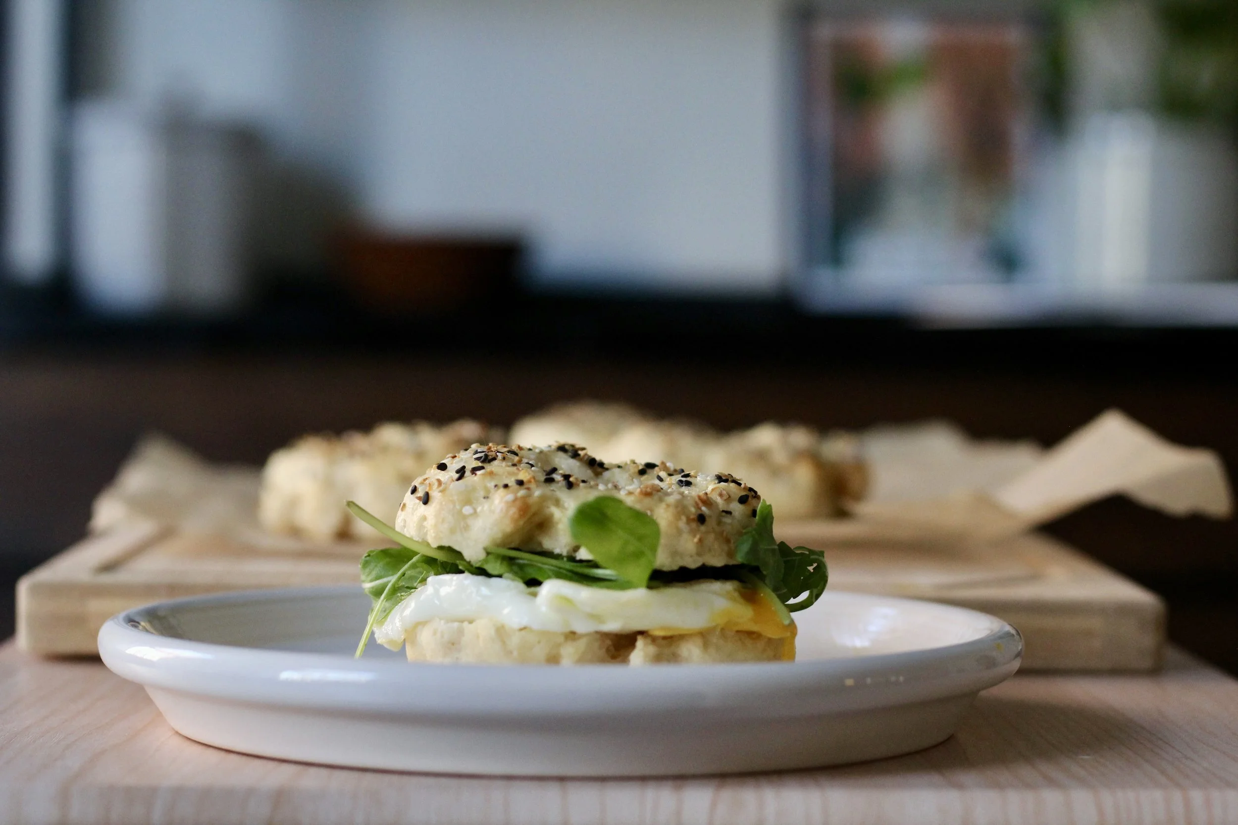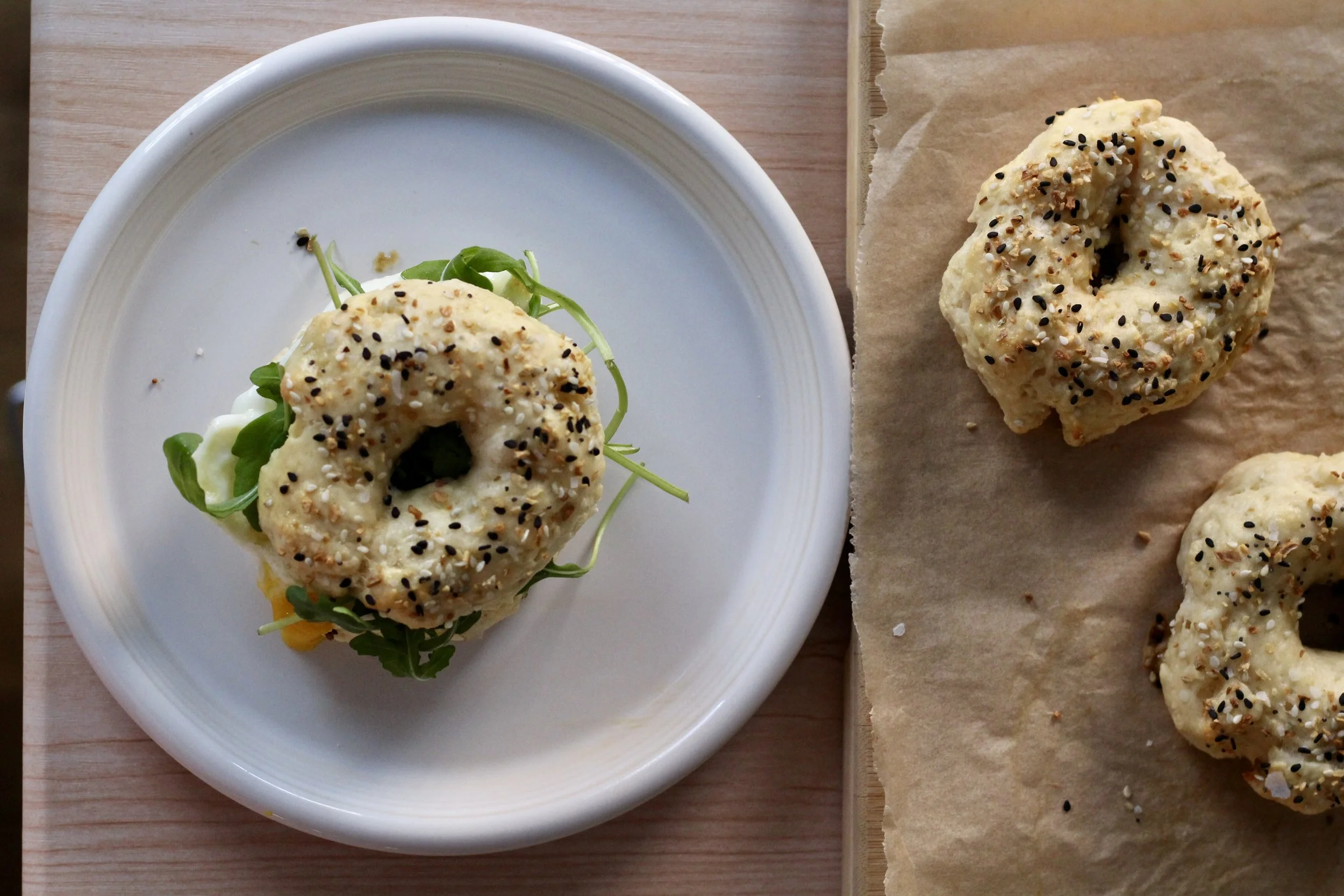 Whisk egg in a small bowl and brush onto the surface of the bagels. Sprinkle a generous amount of everything but the bagel seasoning onto the bagels.